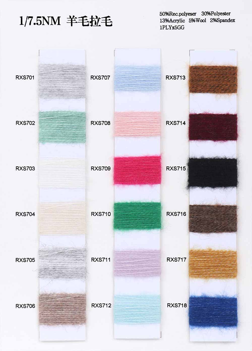 50%再生涤纶Rec Polyester 30%涤纶Polyester 13%腈纶Acrylic 5%羊毛Wool 2%氨纶Spandex